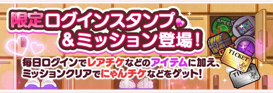 ミッションクリアや毎日ログインで「レアチケット」や「にゃんこチケット」をゲットしてくださいね!