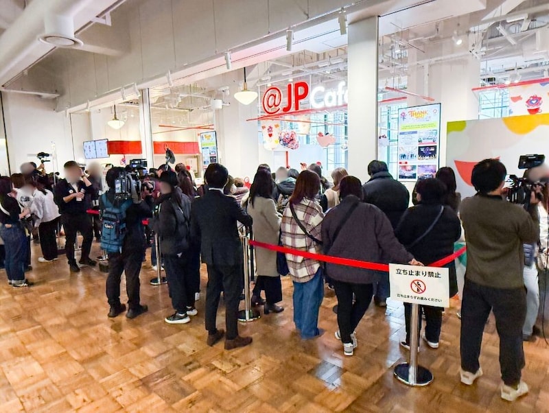カフェがオープンしたのは、KITTE大阪2階の「JP Cafe」。オープン時間には、抽選で選ばれた人たちが列を作り、開店を心待ちにする様子が見られました。