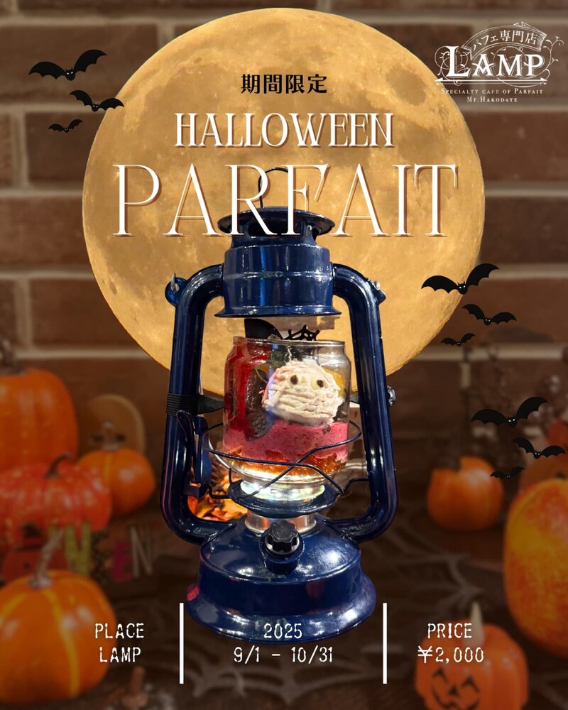 パフェ専門店「LAMP」では、10月31日(金)まで、カシスムースやベリーソースを使用してホラー感を演出した秋季限定「ハロウィンパフェ」も販売中。店内もハロウィン仕様になっています。
