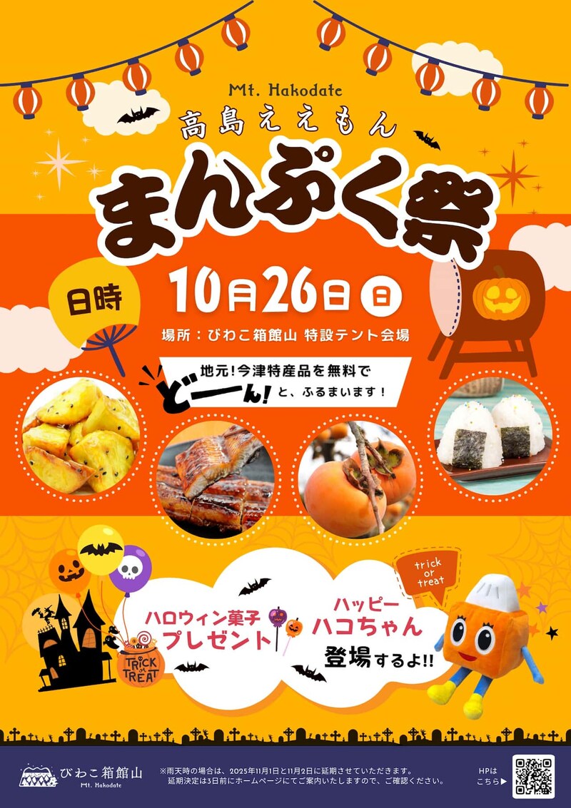 10月26日(日)には、特設テント会場で「高島ええもん まんぷく祭り」を開催。滋賀・高島の特産品である「とんぶりそば」や「今津富有柿」などが、1,400名に無料で提供されます。また、「今津富有柿」「しいたけ」といった、滋賀・今津の特産品の販売も行われるそうです♡