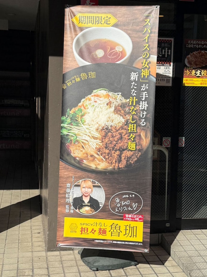 2026年2月4日より、ラーメンチェーン「らあめん花月嵐」では「SPICY 汁なし担々麺 魯珈」が発売開始となった。