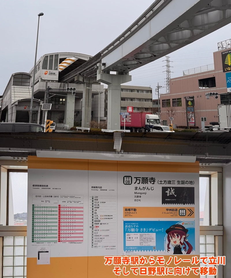 高幡不動尊で土方歳三の銅像を見た筆者は1度、高幡不動駅に戻り北口から「MD2026:日野、ふれあい橋」を開始。