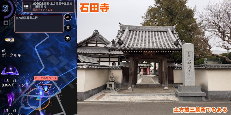 ふれあい橋を渡って、次に選んだミッションはその名もズバリ「MD2026:日野、土方歳三の生誕地、旧石田村」。