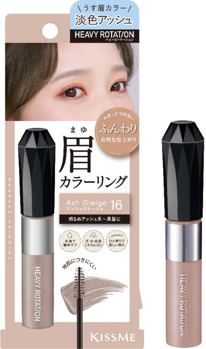 大人気の眉マスカラ「キスミーヘビーローテーションカラーリングアイブロウEX」に、新色アッシュグレージュが仲間入り。肌になじむ明度の高いアッシュにほのかな赤みをプラスした絶妙カラーで、憧れの“うす眉”印象を叶えます。黒髪や暗髪にも自然になじむ注目カラーです♡