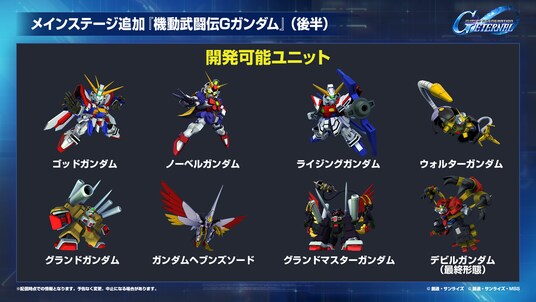 ![『SDガンダム ジージェネレーション エターナル』メインステージ「機動戦士ガンダムUC[ユニコーン]」「機動武闘伝Gガンダム 後半」が追加!](https://assets.mama.aacdn.jp/contents/248/2025/9/1759231804114_eovtfa3qmpn.png?maxwidth=800)