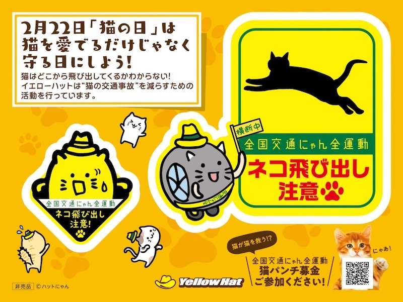 ぜひ2月22日の猫の日に向け、イエローハットが取り組む全国交通にゃん全運動キャンペーンに参加してみてください。
