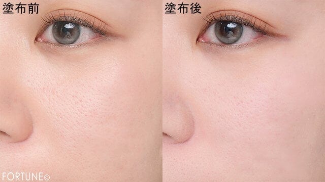 伸びがよいテクスチャーで、肌になじませると毛穴の凹凸にピタッと密着。
