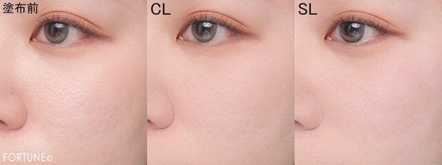 「CL クリア」は、色はほぼつきませんが、重ねるとほんのりトーンアップするように感じました。