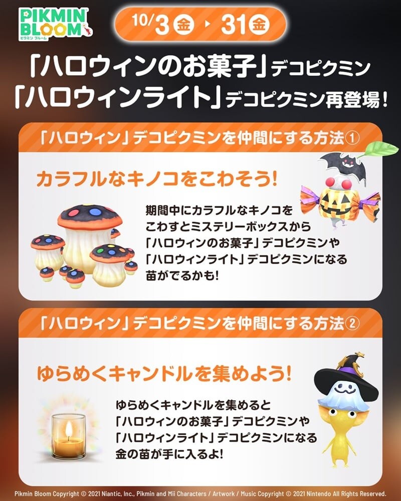 今回解禁されたハロウィンデコピクミンはいずれもすでに実装済みのタイプ。