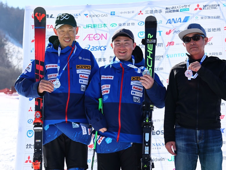 大回転では髙橋(中央)が勝利した「今大会にかける思いは誰よりも強い」と髙橋。日本障害者スキー連盟が決めたパラリンピック内定の条件にわずか届かず、北京大会に続く出場は叶わなかった。