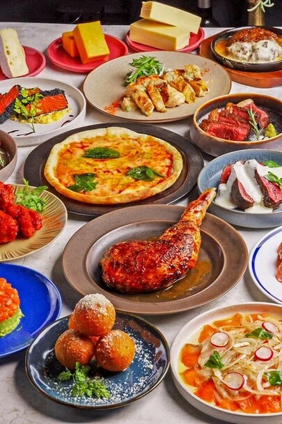 対象コース:窯焼きナポリピッツァが食べ放題!? さらに熱々鉄板チーズ&希少部位ステーキ含む全90種