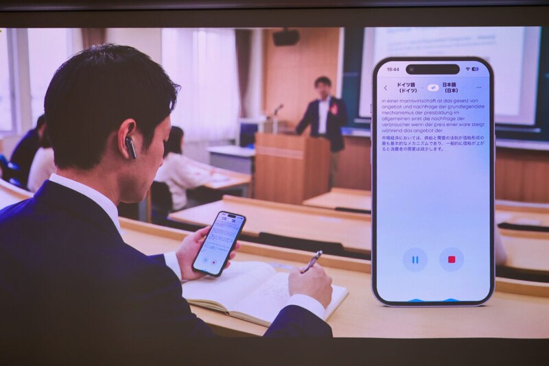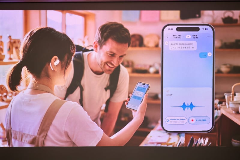 翻訳された内容はスマートフォンの画面上にテキストで表示されるほか、イヤフォンを通じて音声でも再生される。実際に英語音声が日本語に翻訳されるのを体験したところ、かなり実用的な翻訳精度だった。