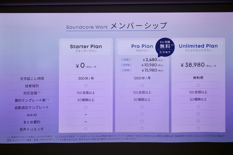 料金プランは、本体を購入するだけで、毎月300分までの文字起こしが無償提供されるスタータープランが利用可能となる。対応言語は150以上、要約テンプレートも30種類以上と豊富だ。