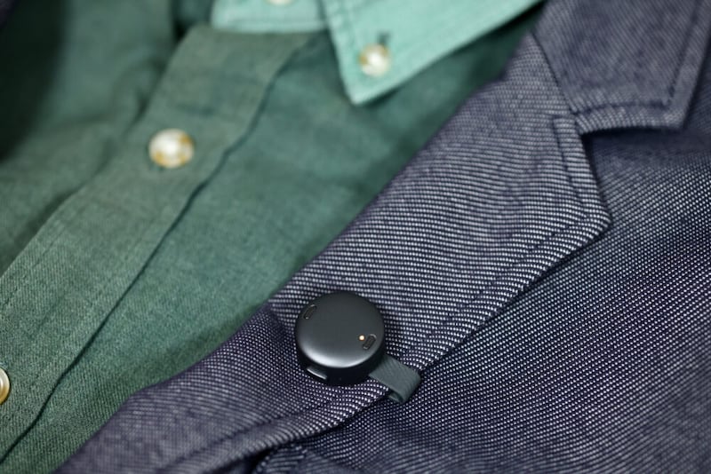 まずハードウェア面についてだが、録音デバイス本体はマグネットクリップを備え、わずか10gという驚異的な軽さを実現している。ご覧のようにシャツやジャケットのエリなどにクリップ度めして使うことが想定されている。