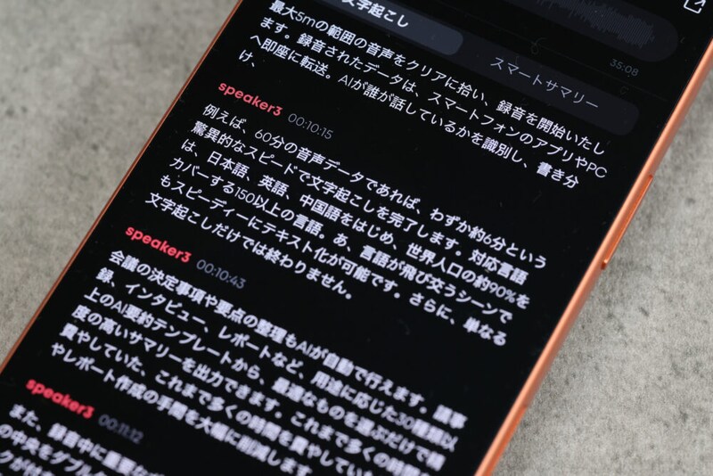 実際に発表会の音声を録音して試したところ、要約も非常に分かりやすく、的を射た内容にまとまった。会議などでも便利に使えそうだ。
