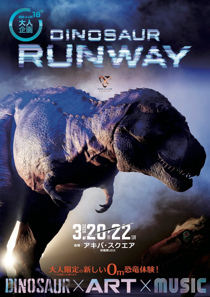 世界最高峰の恐竜ライブエンターテインメント「DINO-A-LIVE(ディノアライブ)」が、かつてない挑戦に打って出る。2026年3月20日から22日の3日間、東京・秋葉原UDX アキバ・スクエアにて、シリーズ初となる18歳以上限定の特別公演『DINOSAUR RUNWAY』の開催が決定した。