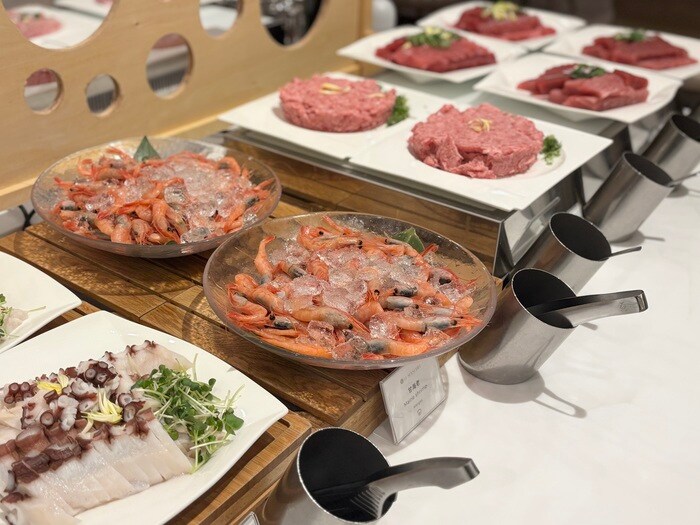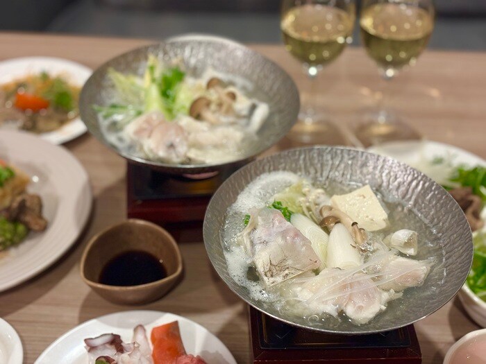 夕食はビュッフェレストランにて、 12~2月限定 「淡路島の 3 年とらふぐてっちり付きのオールインクルーシブプラン」。淡路島 33年とらふぐのてっちりとビュッフェ、フリーフローのドリンクを堪能。(~2026年2月28日(土)まで)