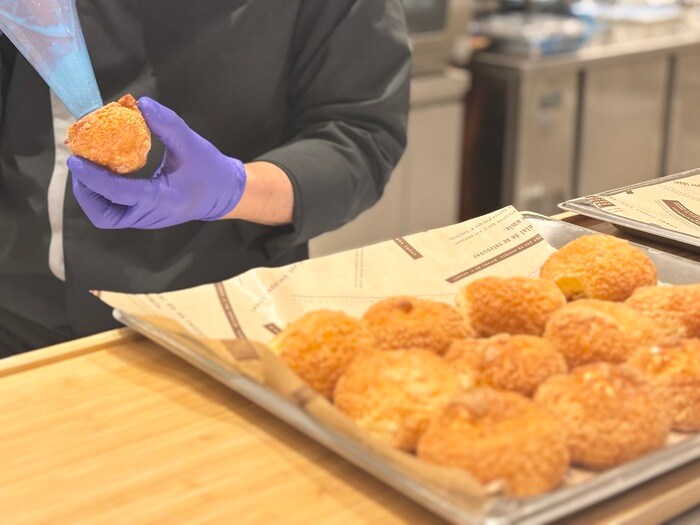 スイーツも本格的、絞りたてを提供する「モンブラン」に「シュークリーム」は、クリームをその場で入れたてなので生地はカリッと食感。