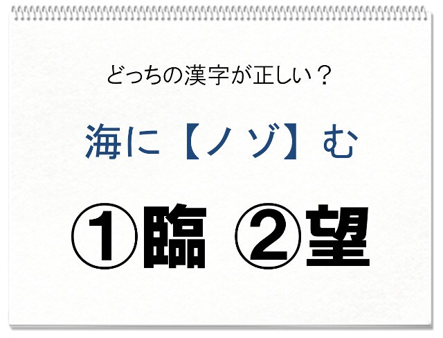 【答】 臨目前に面するときには臨の字を用います。「臨海」という言葉が浮かんだらすぐにわかったかもしれませんね。