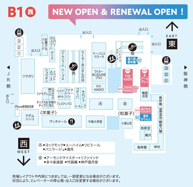 地下1階西側の和洋菓子売場に、ニューオープンやリニューアルオープンの店舗が登場。イートインスペースも完備しています。