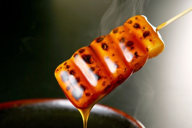 リニューアルオープンする「喜八洲総本舗」の人気商品といえば「みたらし団子」。注文を受けてから直火で炙る香ばしい団子に、上質昆布とたまり醤油、白ざら糖で作る特製タレを絡めたとっておきの味わいを、イートインスペースでいただけます。