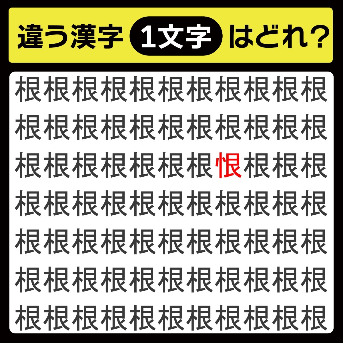違う漢字は、上から3行目、右から4番目の文字でした!