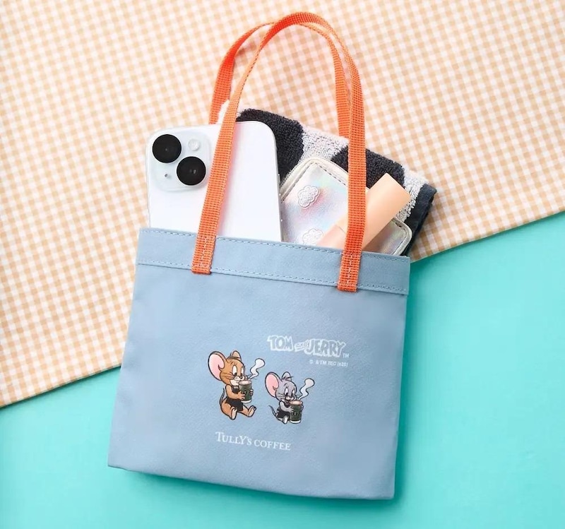 ドリンクホルダーにもぴったりな、ミニサイズのトート。コーヒーを味わうジェリーたちがデザインされています。