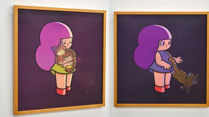 本展では、メインビジュアルとなる新作ペインティング「ダンスシリーズ」の作品と関連グッズを展示・販売するほか、角度によって絵柄が変化する新作レンチキュラーアニメーションパネル「LOVE SETS US FREE」を発表。また、心にそっと寄り添う言葉とアートワークで構成された「ひとことシリーズ」についても、過去の名作を厳選して展示する。