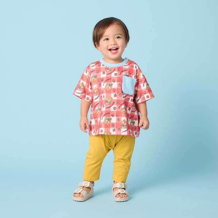 「総柄半袖Tシャツ」は1,590円(税込)。カラーはレッド系、アイボリー系の2色展開で、サイズは80・90・100・110・120の5サイズ。※80、90サイズは左肩スナップボタン留め。