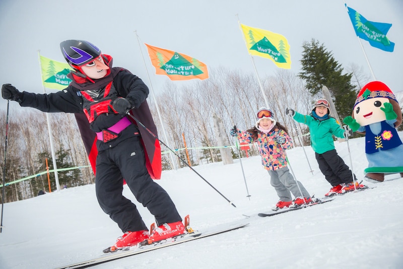 スキーを始めたばかりの人や子どもを対象に、初級者向け体験レッスンを開催。ゲレンデキャラクターであるチョッカリ大魔神と一緒に滑ったりスケーティング対決をしたり、スキーデビューにも最適な、楽しみながら上達できるコンテンツが揃っている。