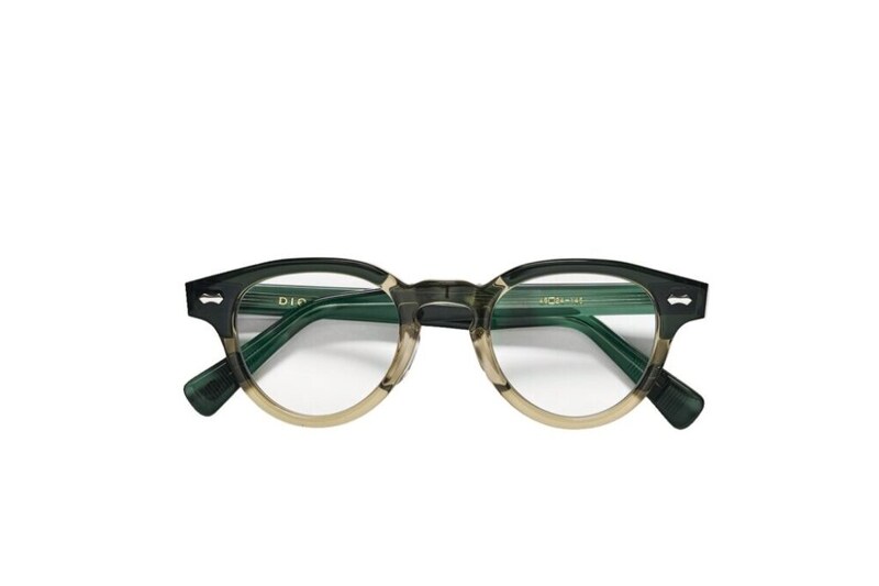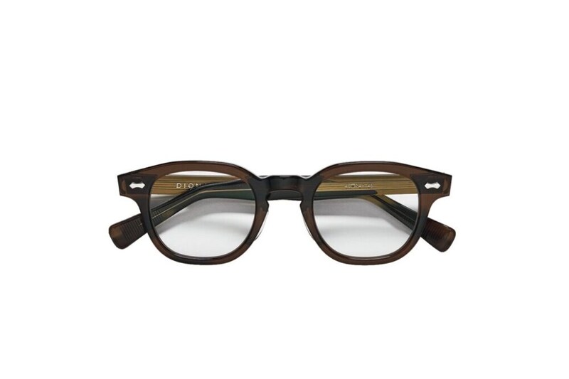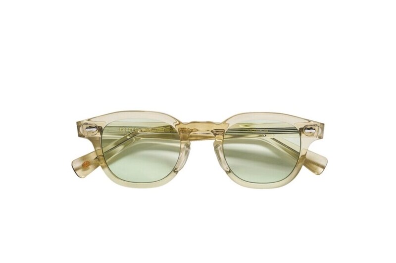 軽やかなクリア系フレームは夏だけでなく、重たい印象になりがちな冬の着こなしにもすごくオススメ。洗練された印象にもなる。グリーン系レンズは四季を通じて使いやすく、個人的にも愛用。
