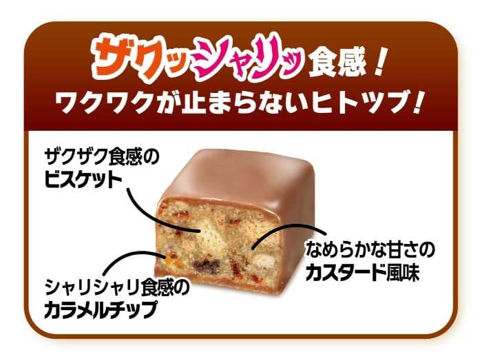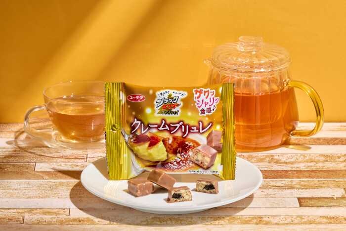 「ブラックサンダーひとくちサイズ クレームブリュレ」は、カスタードパウダーとカラメルチップを贅沢に配合。