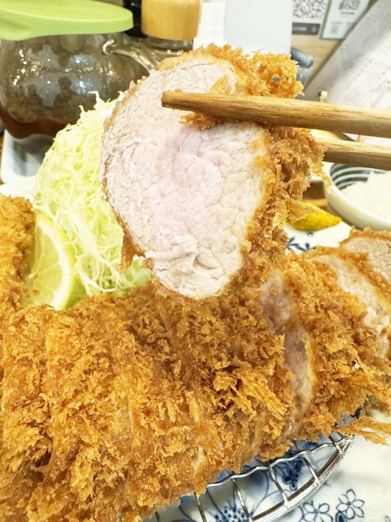 肉、衣、油、脂、ただそれだけで、じゅうぶん美味なのである。かつて「吉平」と「檍」でとんかつを食べて、わかったことがある。それが「本当においしいとんかつは塩やソースがなくともおいしい」ということ。いや、塩もソースもとんかつにとって重要な盛り上げ役ではある。筆者も後半はかけて食べる。それはそれで、とてつもなくウマイ。しかし、なくても食べられてしまうのが「吉平」のとんかつなのだ。
