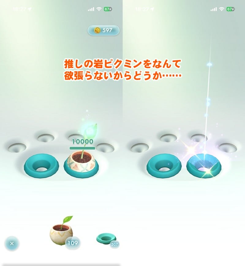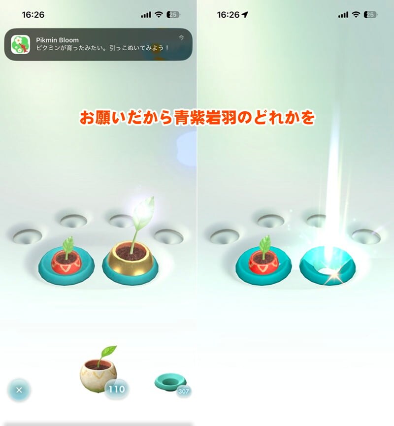 はたして、獲得した2個の苗は微笑んでくれるのか。