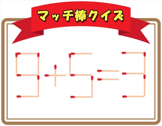 「9+5=3」この間違った式をマッチ棒1本動かして、正しい式にしましょう。頭の中でマッチ棒を色んな場所に移動させて、考えてみてくださいね。