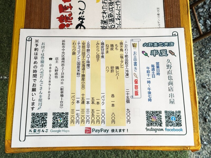 静岡人に聞きたいのだが、静岡県は「久野直也商店」(静岡県浜松市中央区遠州浜2-18-11)に焼鳥を食べに行く所という事でオーケーかな? いや、なぜそう思ったかというと、久野直也商店で焼鳥を買って食べたとき、焼鳥としてのレベルが高すぎて感動したのである。