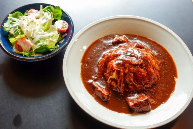 日常づかいができる、1,000円台のランチメニューも充実。オムライスは、歴代の公会堂のレストランに引き継がれる定番料理。「牛肉煮込みのオムライスランチ」は、絶品濃厚ソースが後を引くおいしさです! 「スパイシーポーク黒カレーランチ」(1,450円)、「ミックスフライランチ」(1,900円)、「ハンバーグステーキランチ」(1,700円)、「週替わりパスタランチ」(1,650円)も揃います。