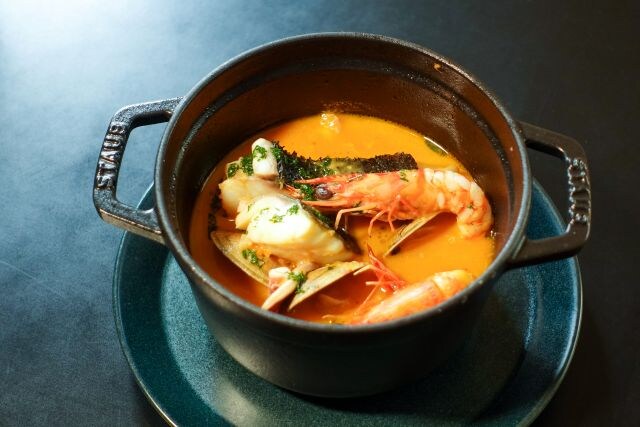 鈴木さんが手がけるアラカルトは、魚介類をたっぷり使った煮込み料理の「カチュッコ」や「天然鰤のレッサート」、「ブッラータと季節のフルーツ」「蛤のクラムチャウダー」「自家製塩漬け豚のトマト煮込み リガトーニ」まで5品が登場。