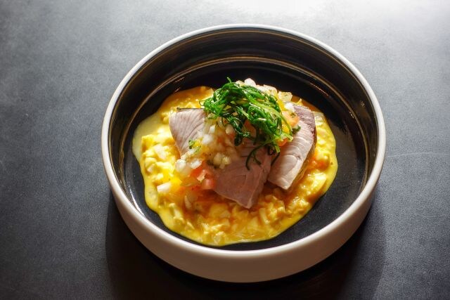 「アラカルトのひとつトスカーナ料理のカチュッコは、お酒をあまり使わずに野菜の甘みや魚介の旨み、トマトで丁寧に作り上げました。幅広い層のお客様がお越しになると思いますので、ブレのないきちんとした料理を楽しんでいただければと思います」と、鈴木さんからメッセージが。