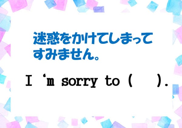 【答】 bother you「I’m sorry to bother you.」となります。 “I’m”を省略して、”Sorry to~”と言っても大丈夫です。