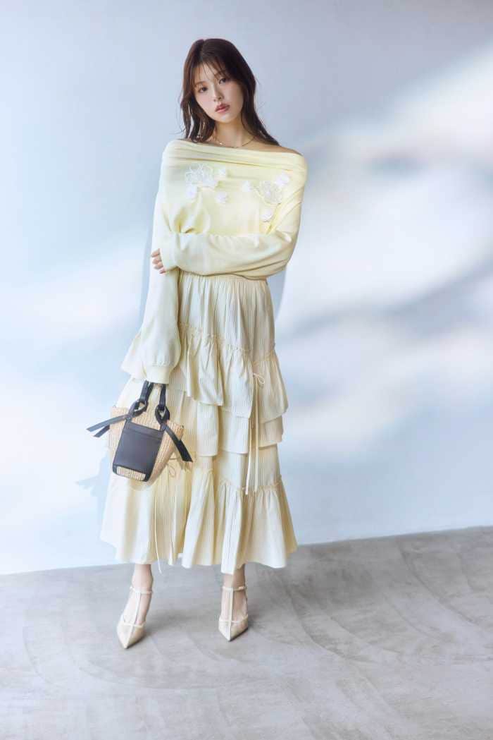 やわらかなカラーや繊細な素材を取り入れたスタイリングは、日常にそっとときめきを添えてくれるラインナップ。フェミニンさと程よい抜け感を両立し、春らしい軽やかさを演出します。