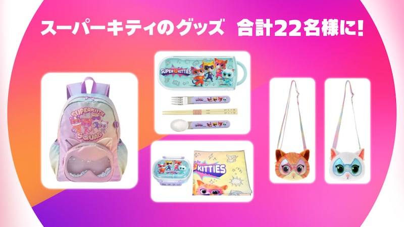 キーワードがわかった方は、公式サイトの応募フォームから応募することで、スーパーキティのリュックやランチボックスなど、ファン必見の豪華なグッズがあたる催しとなっているので、ぜひ特別編成放送中のキーワードをお見逃しなく。
