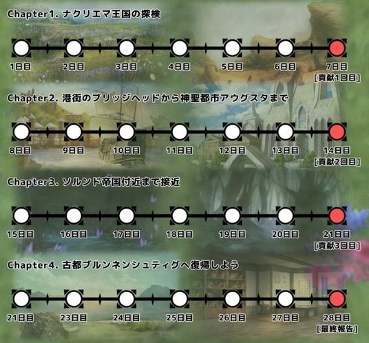 このような背景に応じて用意された特設ページに入り、毎日大陸各地のRED STONEオーラを回収した後、報酬アイテムを獲得することができます。各Chapterの終わりには、3つの勢力のうちの1つに収集したオーラを貢献することができ、特定の勢力に2回以上貢献する場合の報酬も用意されております。すべてのオーラ回収作業を終える28日目の最終報告の際には、どの勢力にRED STONEオーラを貢献したかにより支給される報酬が異なります。最終報告の報酬はテマヌエルのプレゼント、バルラレルのプレゼント、バイルのプレゼント、冒険家協会のプレゼントの4種類があります。
