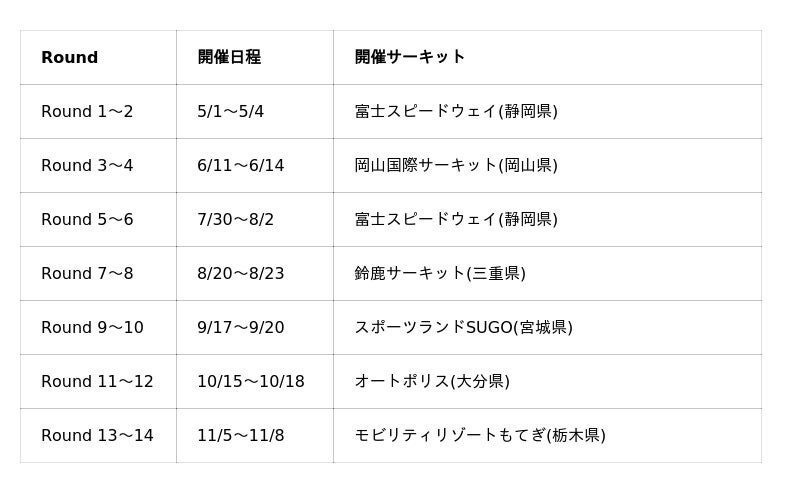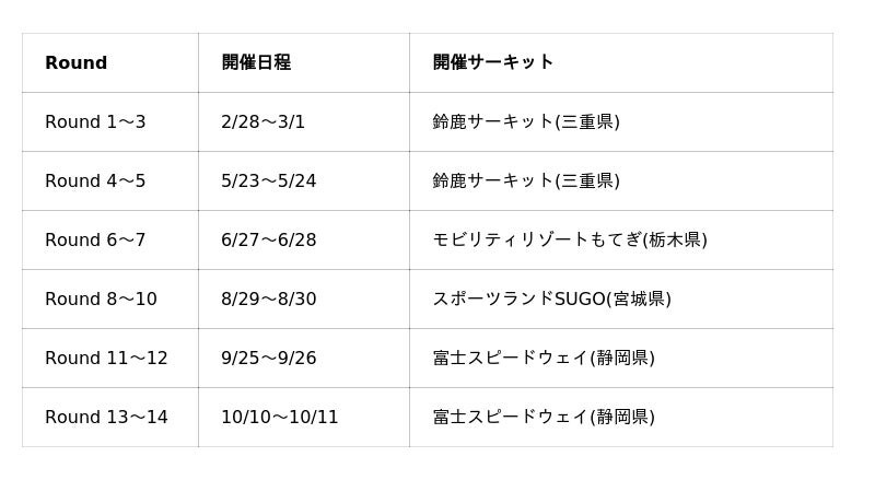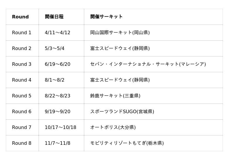初戦は、5月15日「スポーツランドSUGO」にて開催される