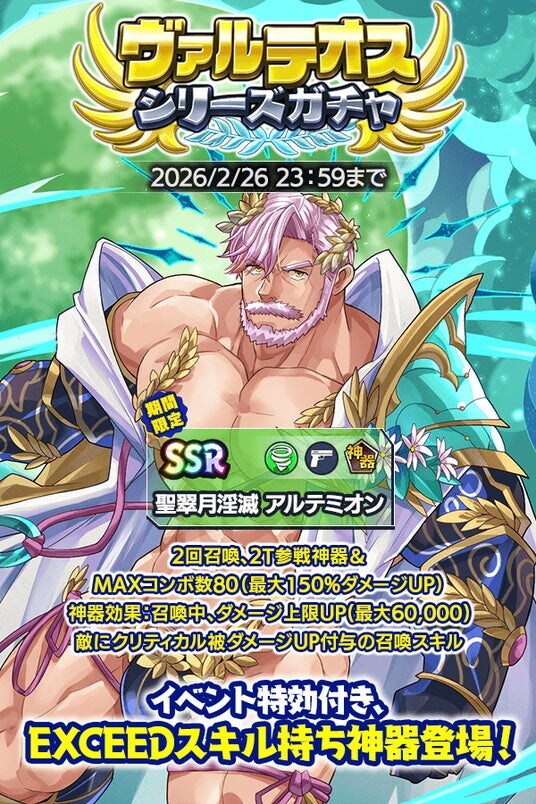 イベント特効付き、強力なEXCEEDスキル持ちの風属性神器「聖翠月淫滅 アルテミオン」が登場!