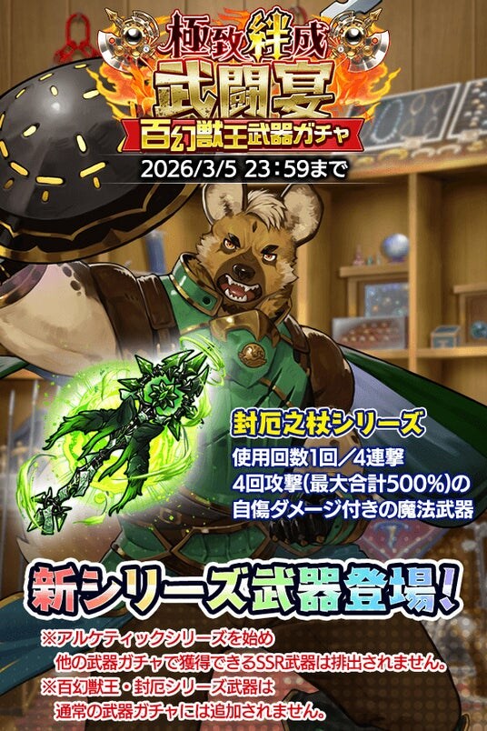 「封厄之杖」シリーズ武器限定の特別ラインナップ武器ガチャが開催!