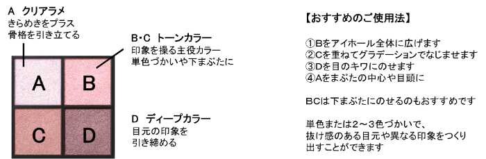クリアラメ、トーンカラー、ディープカラーを組み合わせた4色設計で、重ねてもくすみにくい美発色。自然な陰影をつくり、立体的な目元へ導きます。
