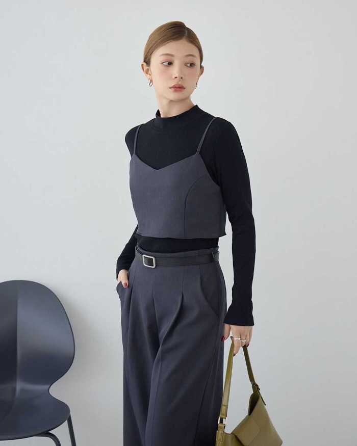 表地:綿92%、ポリウレタン8%、裏地:ナイロン86%、ポリウレタン14%。トップスとしても、インナーとしても使いやすい仕様で、1枚で着替えが完了する快適さと美ラインを両立しています♡