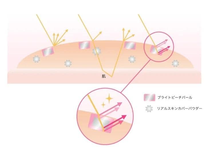 また、新配合の「ブライトピーチパール」で光の反射と血色感をアップ。白浮きせずに肌になじみ、自然な透明感を演出してくれます。