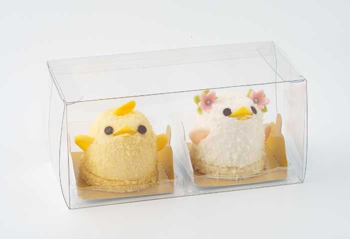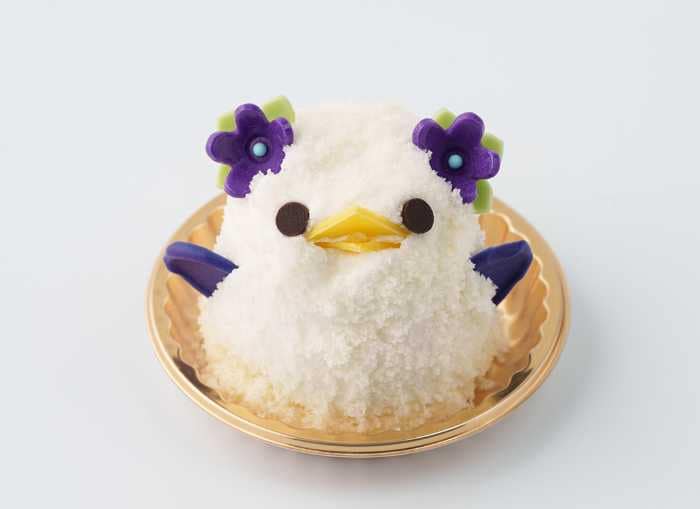 初登場の「横浜春節祭ぴよりん」は、名古屋コーチンの卵を使った濃厚なプリンと桃のジュレを、杏仁風味のババロアで包み、白いスポンジクラムをまとわせた特別仕様。